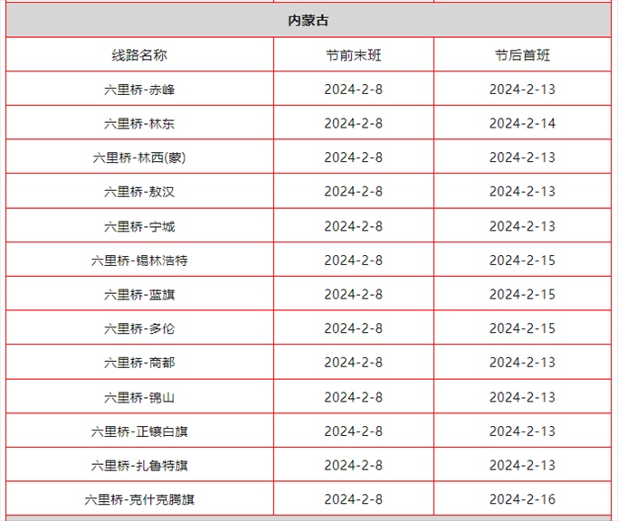 北京六里橋客運(yùn)主樞紐春節(jié)運(yùn)營(yíng)安排發(fā)布,具體如下: