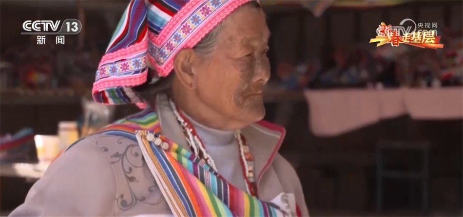 現(xiàn)在獨(dú)龍江鄉(xiāng),近千位獨(dú)龍族婦女和她一樣,在用傳統(tǒng)的方式編織著走向世界的獨(dú)龍?zhí)?,李文仕奶奶就是其中之一,她是目前?dú)龍族僅有的17位文面女中的一位。當(dāng)記者找到她時,老奶奶正在熟練得玩手機(jī)。自從2022年5G網(wǎng)絡(luò)覆蓋了獨(dú)龍江鄉(xiāng)的6個行政村后,李文仕奶奶除了務(wù)農(nóng)織布、唱歌跳舞,還培養(yǎng)了一個新的愛好,就是網(wǎng)上沖浪。