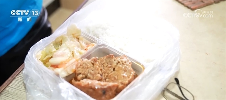 常奶奶收到的是在街道老年食堂預定的午餐,18塊錢,有葷有素、軟爛入口,能在家吃上熱乎乎的放心飯,這讓92歲的常奶奶踏實不少。