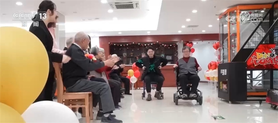 一走進山東青島的這家養(yǎng)老院,記者就碰上了一場特殊的“輪椅”競速賽?!?5后”男孩劉云峰正模擬老年人推著助力車前進,而他的競爭對手張奶奶用單手操作電動輪椅就輕松沖過了終點。