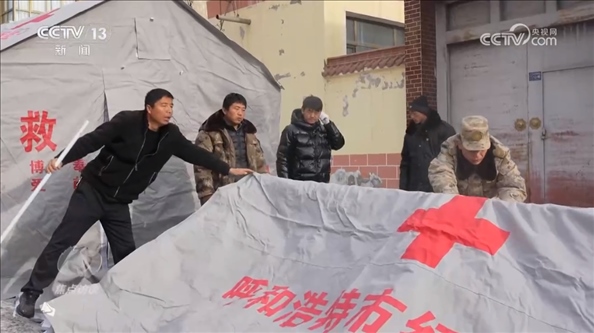 甘肅省臨夏州積石山縣石塬鎮(zhèn)振興社區(qū)副主任孔德義:“他發(fā)揮的作用特別大,因為他畢竟是部隊出身,身體素質(zhì)好,搭帳篷這一塊特別強(qiáng)。有他在的話,5分鐘就能完成一個,效率特別高。還有像如何規(guī)避余震帶來的傷害,他先給先鋒隊講解,我們再逐個分散開給群眾講解,等同于一個專業(yè)人士帶領(lǐng)著先鋒隊去幫助更多的群眾,去服務(wù)群眾。”