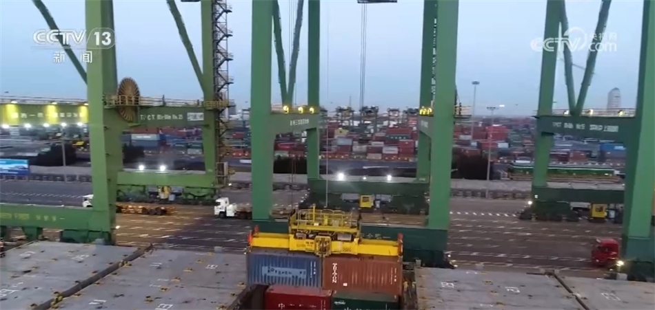 總臺記者 李青音:我現(xiàn)在的位置是天津海事局東疆海事監(jiān)管基地,這兒就好比整個港區(qū)的大腦,協(xié)調(diào)管理著所有航班的進出。在確保航行安全的前提下,海事部門不僅為“車?yán)遄涌炀€”優(yōu)先安排了引航、泊岸,還啟動了船舶的進出口岸的審批優(yōu)先政策,讓其在天津水域?qū)崿F(xiàn)即到即進、即進即靠,僅這一項就讓船舶節(jié)約至少兩個小時的等待時間。