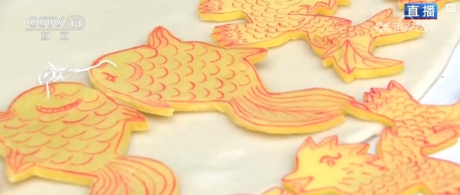 傳統(tǒng)“八大碗”,葷素搭配、香味撲鼻。這個菜叫做麻脆,是村民們過年的時候一定要吃上的美味。麻脆由糯米制作而成,不僅有不同的顏色,還可以制作成花鳥魚蟲、蔬菜水果等多種圖案。龍年到來,村里還特別用蔬果做了一條中國龍。