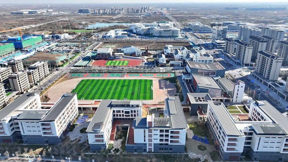 雄安新區(qū)啟動區(qū)的北京四中雄安校區(qū)和雄安史家胡同小學(無人機照片)。2023年11月30日新華社記者牟宇 攝