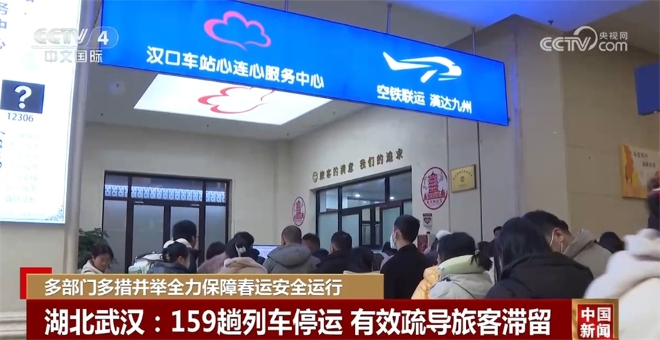 受雨雪天氣影響,截至3日上午,湖北武漢159趟列車停運(yùn),部分列車出現(xiàn)晚點(diǎn),旅客出行受到較大影響。為避免出現(xiàn)旅客滯留的情況,漢口火車站增開了安檢通道,做好引導(dǎo)服務(wù),同時啟用臨時候車區(qū)域,為列車晚點(diǎn)的旅客提供舒適的候車環(huán)境。同時,為了應(yīng)對節(jié)前出行高峰,武漢鐵路部門還通過強(qiáng)化空鐵聯(lián)運(yùn),為有換乘飛機(jī)需求的旅客提供便利。