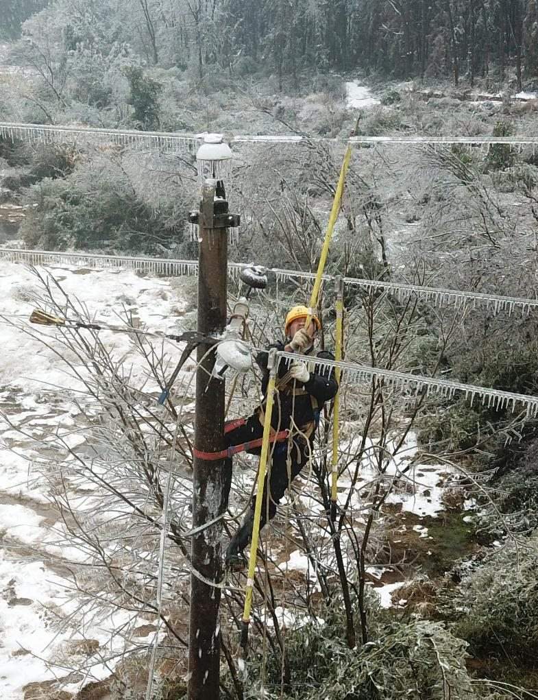 4日深夜,位于武漢市江岸區(qū)花惠社區(qū)門口的樹木覆冰折斷,壓斷了位于樹下的電線桿,造成10千伏三眼橋線故障停電。收到消息后,國網(wǎng)武漢供電公司搶修人員姚志飛和他的同事趕到現(xiàn)場。姚志飛和同事們頂著風(fēng)雪,熟練地進(jìn)行著發(fā)電車的接電工作。不一會兒,附近居民的供電恢復(fù)正常。此后,經(jīng)過他們一夜奮戰(zhàn),新的電線桿立起,搶修完成。