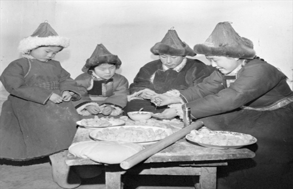 1962年,遼寧開(kāi)原一戶居民在包餃子。