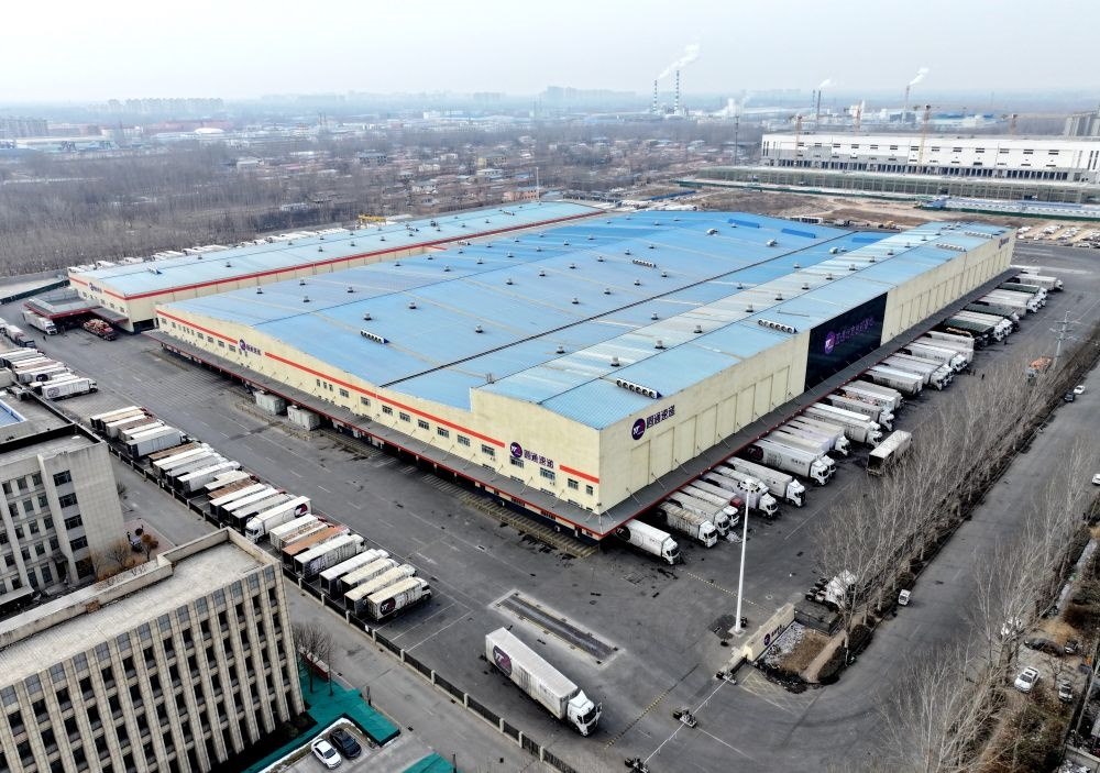 2024年2月4日拍攝的河北永清經(jīng)濟開發(fā)區(qū)的圓通速遞北方總部基地(無人機照片)。新華社記者 王曉 攝
