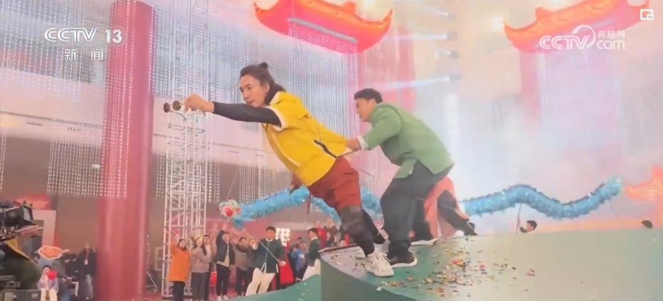 央視網(wǎng)消息:中央廣播電視總臺(tái)《2024年春節(jié)聯(lián)歡晚會(huì)》武術(shù)節(jié)目《爭(zhēng)春》由袁和平作為監(jiān)制,樊少皇、吳樾、此沙三位演員與塔溝武校的學(xué)員們,分為三支舞龍隊(duì)比拼武藝、以武爭(zhēng)春。節(jié)目中再現(xiàn)經(jīng)典武術(shù)招式,同時(shí)融入了更多生活化的情節(jié),一招一式剛?cè)岵?jì),盡顯春日里萬(wàn)物競(jìng)發(fā)勃勃生機(jī)。