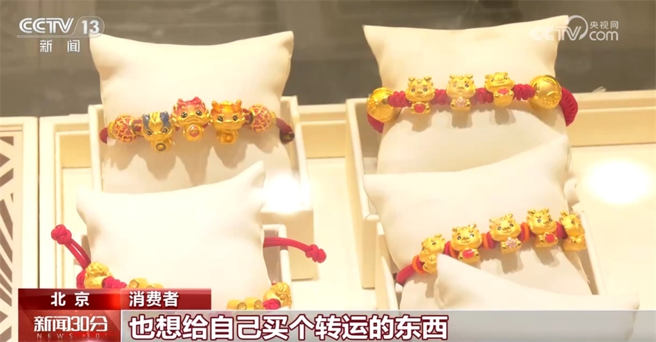 消費(fèi)者:我今天陪父母看看黃金,今年龍年,也想給自己買個(gè)(黃金)轉(zhuǎn)運(yùn)的東西,能夠在新的一年開開心心、健健康康的。(黃金飾品)樣式非常多,工藝越來越精湛了。