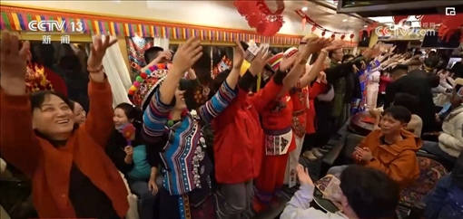 就在記者采訪時,列車員邀請大家去一號車廂參加一個聯(lián)歡會。春節(jié)爆滿的車廂,讓他們也感受到了濃濃的年味兒。