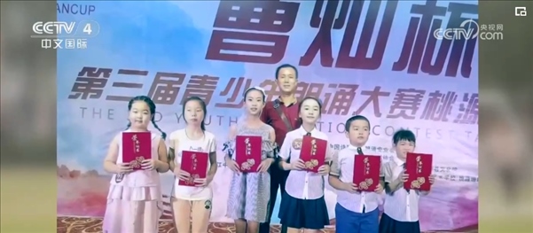 最初只有五名學(xué)生的朗誦團(tuán)“沅水童聲”就這樣成立了。上課和朗讀,幾乎占據(jù)了郭云兵的全部時(shí)間,他買來教材、打卡各個(gè)平臺、總結(jié)朗讀技巧,他把舞臺從教室搬到操場上、沅水河邊,鼓勵大家勇于表達(dá)……在2017年的“曹燦杯”全國青少年朗誦大賽中,孩子們一路過關(guān)斬將殺進(jìn)省賽,捧回3塊金牌。很多孩子變得越來越自信,也在成長中逐漸懂事,感受到父母的不易。