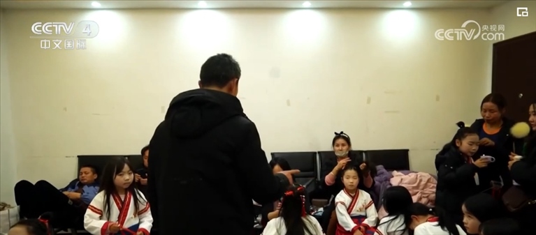 學(xué)生們要放寒假了,郭云兵的寒假計(jì)劃已經(jīng)排的滿滿當(dāng)當(dāng),其中一項(xiàng)就是帶領(lǐng)朗誦團(tuán)參加當(dāng)?shù)厣賰捍和淼匿浿?。許多新加入的成員還是第一次站上舞臺,上場前郭云兵給他們加油打氣。