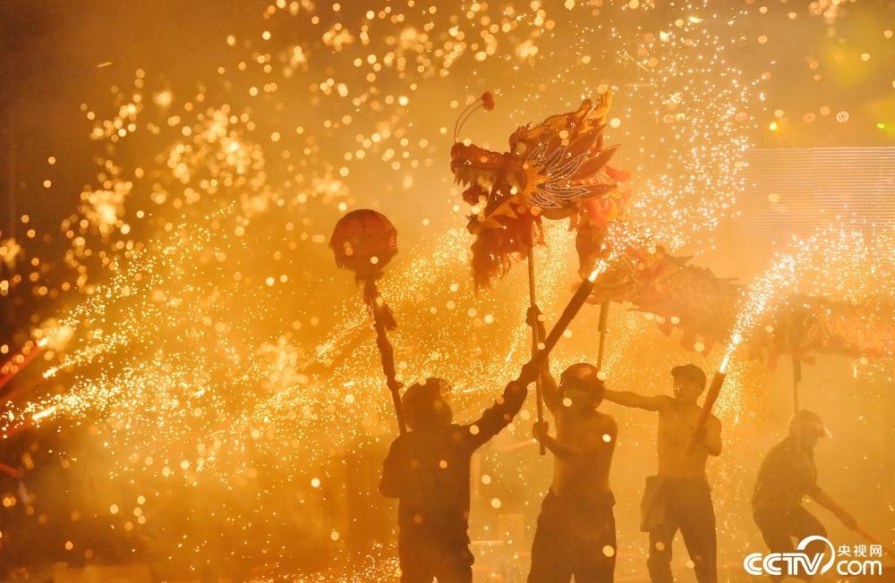 2024年2月14日,貴州省銅仁市印江土家族苗族自治縣新寨鎮(zhèn)凱望村舉行舞龍噓花賀新春活動。鑼鼓喧天,土家族村民揮舞著4條彩色長龍在噓花中穿梭舞動,向村民們拜年共賀新春,呈現(xiàn)出熱鬧喜慶的節(jié)日氣氛。