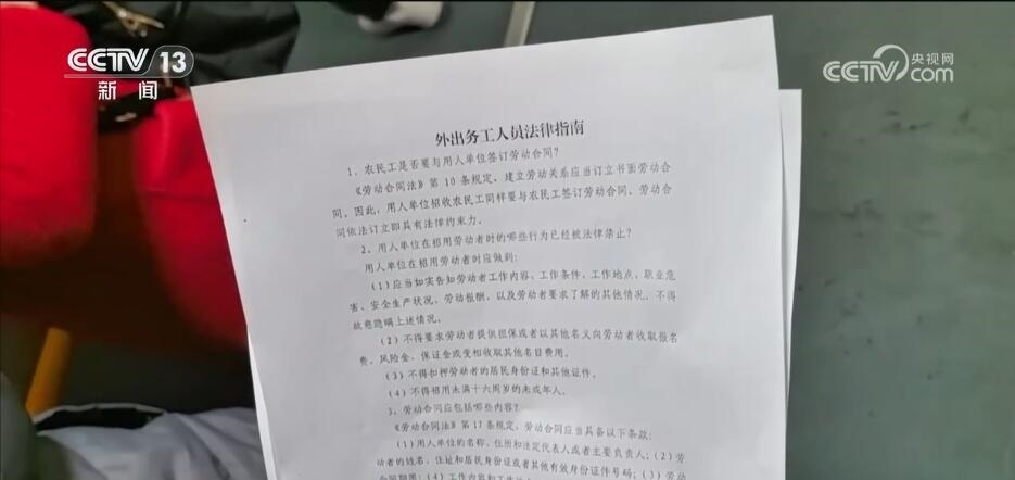 在南昌開往成都東、廣州等務(wù)工人員較多的列車上,鐵路工作人員收集整理了外出務(wù)工法律指南,發(fā)放給有需求的旅客,幫助他們提高維權(quán)意識,保障自身合法權(quán)益。