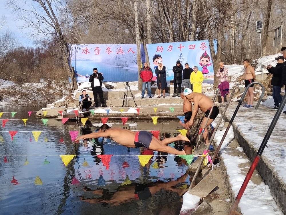 內(nèi)蒙古呼倫貝爾市扎蘭屯市的冬泳愛(ài)好者在進(jìn)行冬泳。(溫秀華攝 新華社發(fā))