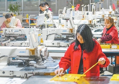 正月初六,湖南永州市道縣高新技術產(chǎn)業(yè)園區(qū)內(nèi),工人在流水線上工作。蔣克青攝(新華社發(fā))
