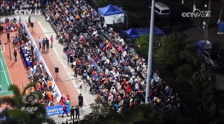 2月4日下午,海南文昌市文城鎮(zhèn)玉陽公園里正在進(jìn)行一場排球賽,場上對戰(zhàn)的是馮坡鎮(zhèn)五龍戰(zhàn)隊和文昌龍樓鎮(zhèn)航天小鎮(zhèn)隊。參賽隊員都是本地人,而觀眾則是來自天南地北。最終,龍樓鎮(zhèn)航天小鎮(zhèn)隊以3:1戰(zhàn)勝了馮坡鎮(zhèn)五龍戰(zhàn)隊。黃前穎是龍樓鎮(zhèn)航天小鎮(zhèn)隊的隊員,他從6歲就開始玩排球,玩著玩著就變成了熱愛。