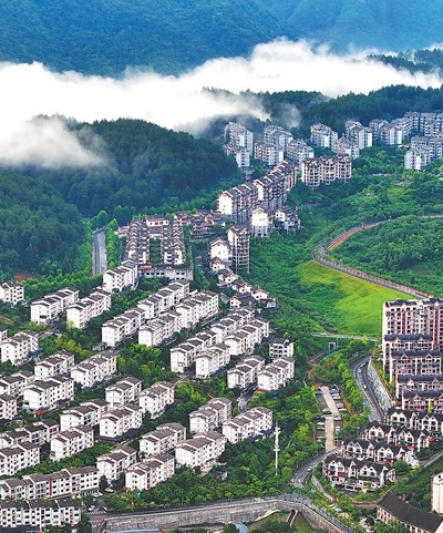 重慶市萬(wàn)盛經(jīng)開區(qū)北門村移民新村,一棟棟錯(cuò)落有致的民居與高山相映成景。讓搬遷群眾“搬得出、穩(wěn)得住、能致富”,各地因地制宜發(fā)展特色產(chǎn)業(yè),助力農(nóng)民持續(xù)增收。曹永龍攝(人民視覺)