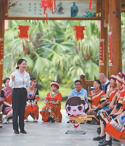廣西壯族自治區(qū)桂林市恭城瑤族自治縣,黨員在“桂姐姐”課堂上進(jìn)行宣講。近年來(lái),當(dāng)?shù)匾劳行聲r(shí)代文明實(shí)踐中心,組織“桂姐姐”宣講隊(duì),傳播黨建、法律和婦女兒童權(quán)益保障等知識(shí)。各地新時(shí)代文明實(shí)踐中心成為精神文明建設(shè)的重要陣地,在加強(qiáng)思想政治引領(lǐng)、培育社會(huì)文明風(fēng)尚等方面發(fā)揮著重要作用。劉教清攝(人民視覺)