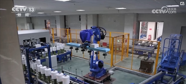 研發(fā)快速、制造智能,在浙江的一個(gè)錦綸生產(chǎn)車(chē)間,從原料配送、落筒、絲餅傳輸檢測(cè)、包裝和倉(cāng)儲(chǔ)都已實(shí)現(xiàn)全流程智能制造,24小時(shí)開(kāi)工。