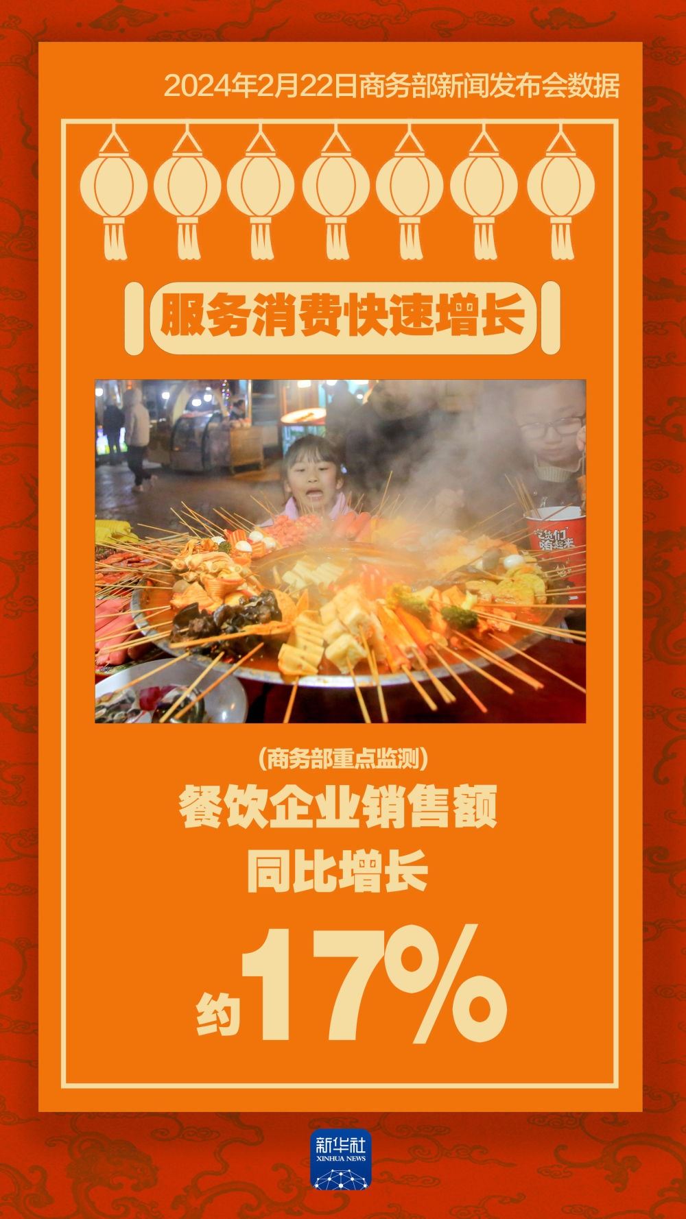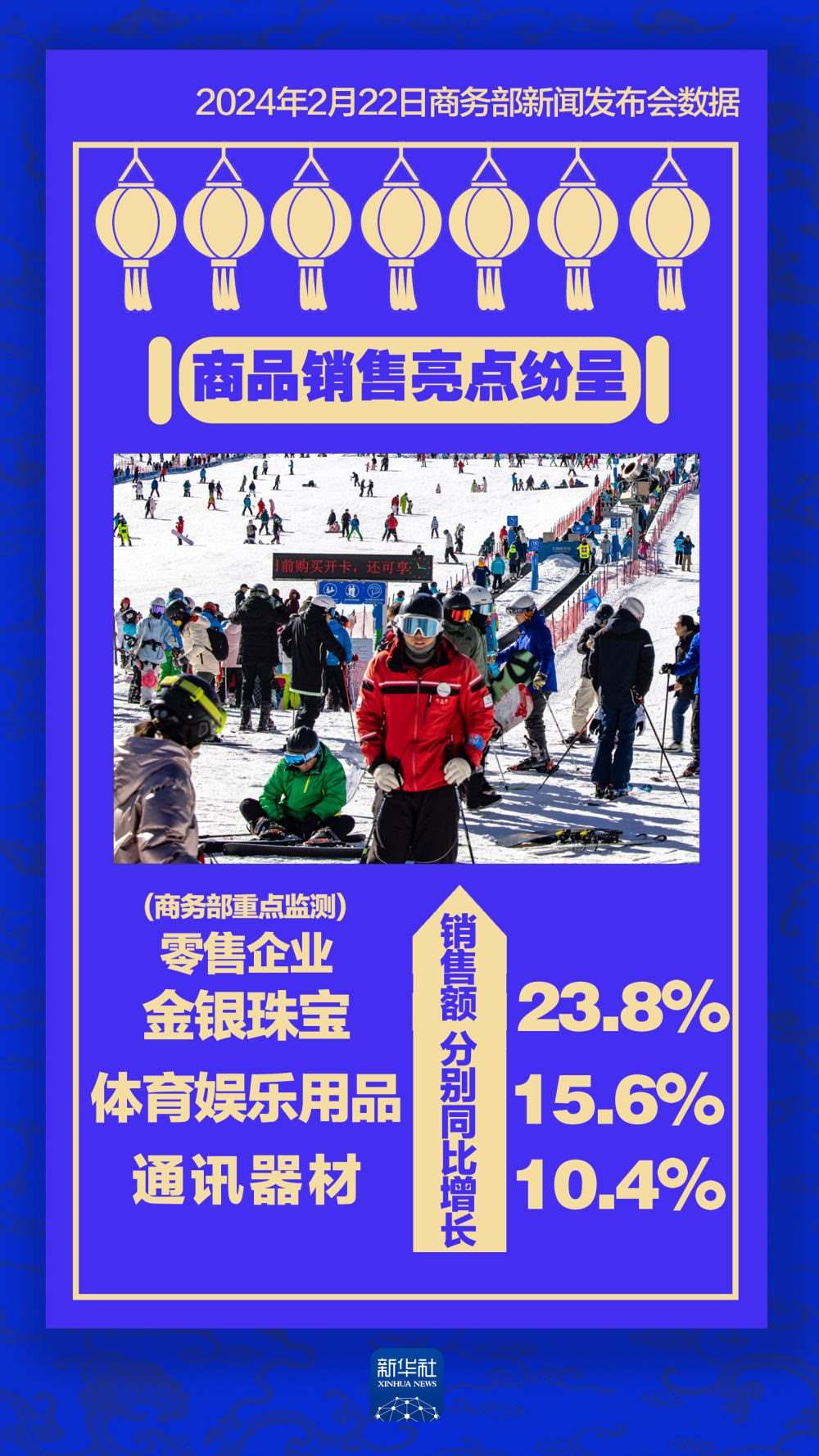 2月22日,商務(wù)部召開(kāi)例行新聞發(fā)布會(huì)。商務(wù)部新聞發(fā)言人何亞?wèn)|說(shuō),今年春節(jié)消費(fèi)市場(chǎng)年味濃、活力足、人氣旺,銷售較快增長(zhǎng),實(shí)現(xiàn)良好開(kāi)局。在新春消費(fèi)旺季和各項(xiàng)政策措施帶動(dòng)下,預(yù)計(jì)一季度消費(fèi)市場(chǎng)將呈現(xiàn)平穩(wěn)增長(zhǎng)態(tài)勢(shì)。