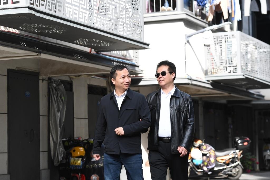 王永澄(左一)在福州市鼓樓區(qū)紅墻巷小區(qū)調(diào)研盲人家庭子女入學(xué)及保障房入住情況(2月18日攝)。