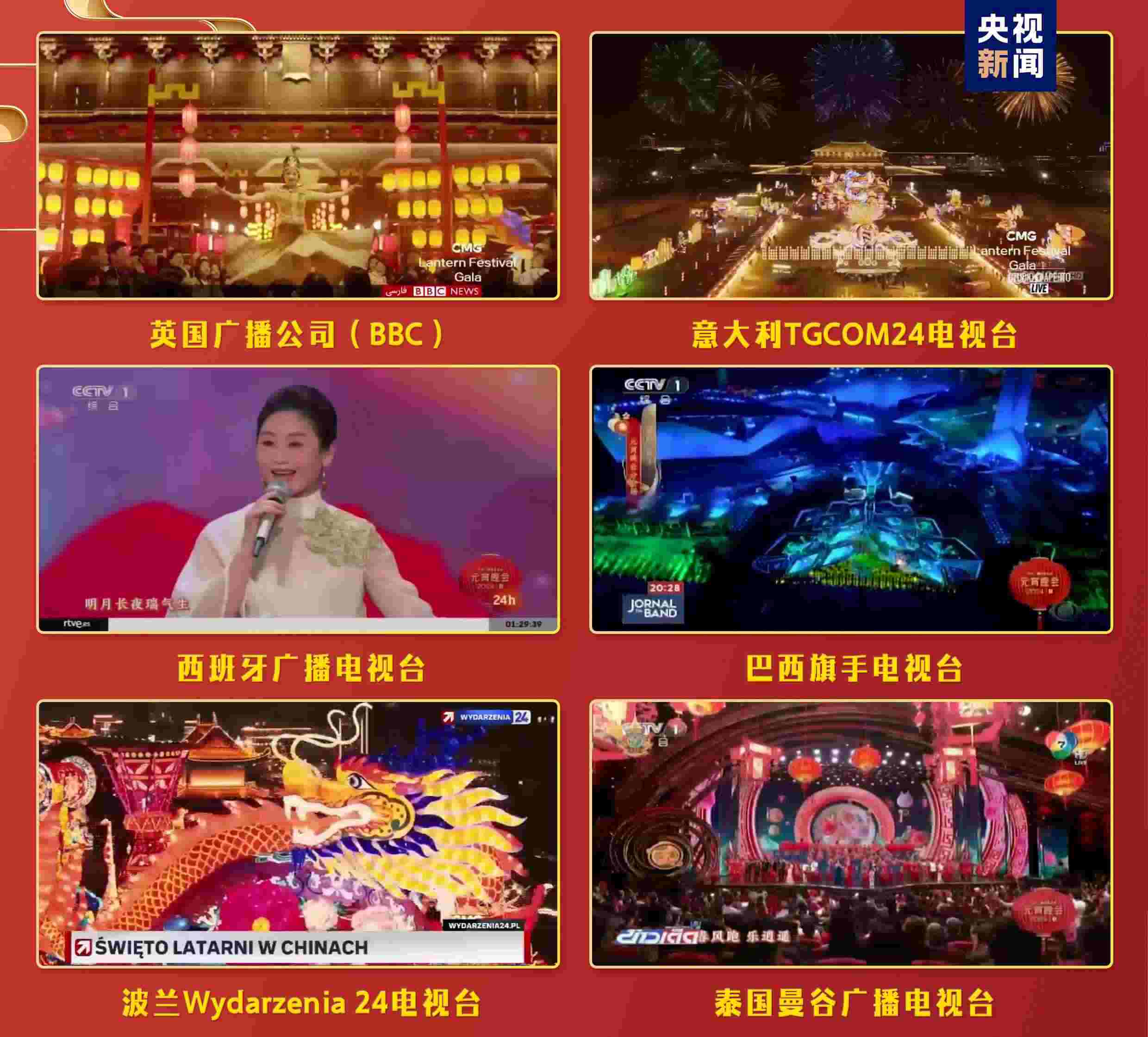 全球媒體報道,中華傳統(tǒng)文化引關(guān)注。總臺國際視頻通訊社向全球媒體推送元宵晚會18條精品節(jié)目和報道、80篇多語種稿件等,被英國廣播公司(BBC)、意大利廣播電視公司、全俄國家電視廣播公司、西班牙廣播電視臺、巴西旗手電視臺等13個國家和地區(qū)的18個電視臺及其新媒體平臺播發(fā)。CGTN(中國國際電視臺)68種語言發(fā)布元宵晚會相關(guān)報道1210條,獲全球閱讀量1.7億?!?024年元宵晚會:流光溢彩元宵夜》等多語種特稿獲圣彼得堡調(diào)頻臺網(wǎng)站、意大利埃瑞亞通訊社網(wǎng)站、羅馬之聲電臺、米蘭廣播新聞臺、哈薩克斯坦《實業(yè)報》網(wǎng)站、斯里蘭卡ITN國家電視臺、泰國第5電視臺、巴西《伯南布哥日報》等多家海外主流媒體轉(zhuǎn)載轉(zhuǎn)引。央視網(wǎng)海外社交媒體面向全球受眾同步播出元宵晚會,直點播觀看總?cè)舜?strong>2885萬次,比去年增長了27%。