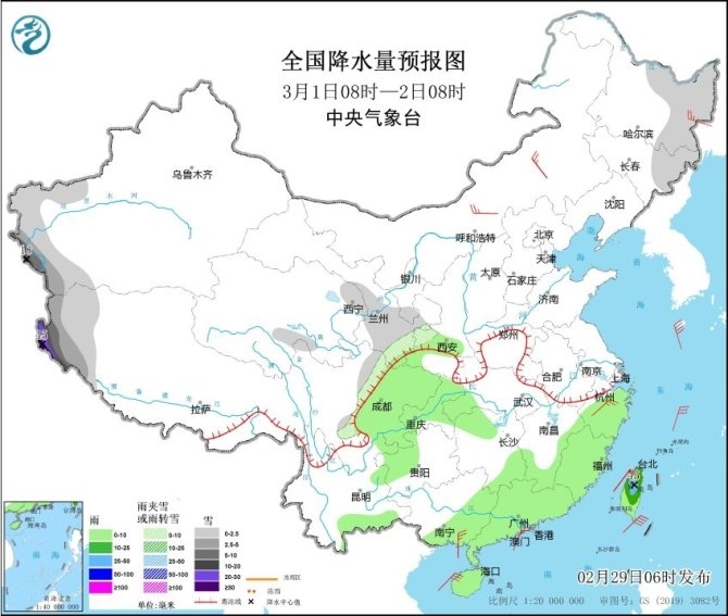 央視網(wǎng)消息:中央氣象臺(tái)網(wǎng)站2月29日消息,過去一天,全國雨雪逐漸發(fā)展增強(qiáng),北方大部以降雪為主,集中在西北地區(qū)東部、內(nèi)蒙古、山西、山東和東北三省等地;南方地區(qū)雨水范圍明顯擴(kuò)大,江蘇、上海、浙江、安徽南部、江西中北部、湖南中南部、廣西北部等地部分地區(qū)出現(xiàn)中到大雨,今天凌晨起,蘇皖北部出現(xiàn)雨轉(zhuǎn)雪,江蘇連云港、宿遷、徐州等地雪花紛飛,并伴隨低溫和大風(fēng)天氣,體感十分寒冷。