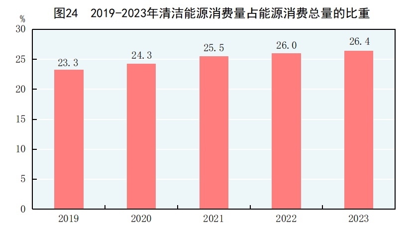 綠色低碳轉(zhuǎn)型深入推進(jìn)。全年全國(guó)萬(wàn)元國(guó)內(nèi)生產(chǎn)總值二氧化碳排放[21]與上年持平。水電、核電、風(fēng)電、太陽(yáng)能發(fā)電等清潔能源發(fā)電量31906億千瓦時(shí),比上年增長(zhǎng)7.8%。在監(jiān)測(cè)的339個(gè)地級(jí)及以上城市中,空氣質(zhì)量達(dá)標(biāo)的城市占59.9%,未達(dá)標(biāo)的城市占40.1%。3641個(gè)國(guó)家地表水考核斷面中,水質(zhì)優(yōu)良(Ⅰ~Ⅲ類(lèi))斷面比例為89.4%,Ⅳ類(lèi)斷面比例為8.4%,Ⅴ類(lèi)斷面比例為1.5%,劣Ⅴ類(lèi)斷面比例為0.7%。