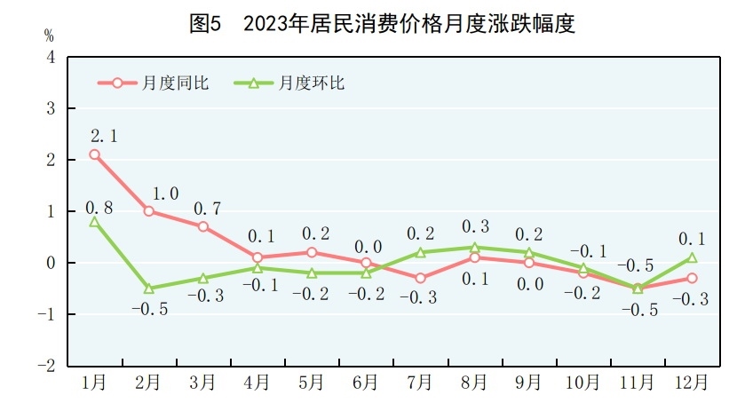 全年居民消費(fèi)價(jià)格比上年上漲0.2%。工業(yè)生產(chǎn)者出廠價(jià)格下降3.0%。工業(yè)生產(chǎn)者購(gòu)進(jìn)價(jià)格下降3.6%。農(nóng)產(chǎn)品生產(chǎn)者價(jià)格[9]下降2.3%。12月份,70個(gè)大中城市中,新建商品住宅銷(xiāo)售價(jià)格同比上漲的城市個(gè)數(shù)為20個(gè),持平的為2個(gè),下降的為48個(gè);二手住宅銷(xiāo)售價(jià)格同比上漲的城市個(gè)數(shù)為1個(gè),下降的為69個(gè)。