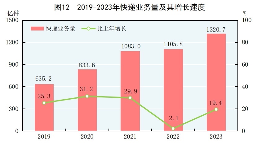 [29]郵政行業(yè)寄遞業(yè)務(wù)總量是指企業(yè)從事各類(lèi)郵政普遍服務(wù)業(yè)務(wù)、快遞業(yè)務(wù)的總數(shù)量。