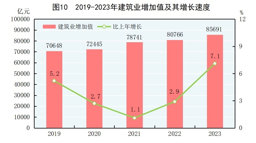 全年建筑業(yè)增加值85691億元,比上年增長(zhǎng)7.1%。全國(guó)具有資質(zhì)等級(jí)的總承包和專(zhuān)業(yè)承包建筑業(yè)企業(yè)利潤(rùn)8326億元,比上年增長(zhǎng)[27]0.2%,其中國(guó)有控股企業(yè)4019億元,增長(zhǎng)4.3%。