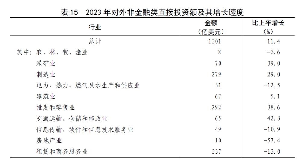 全年對(duì)外非金融類(lèi)直接投資額9170億元,比上年增長(zhǎng)16.7%,折1301億美元,增長(zhǎng)11.4%。其中,對(duì)共建“一帶一路”國(guó)家非金融類(lèi)直接投資額2241億元,增長(zhǎng)28.4%,折318億美元,增長(zhǎng)22.6%。