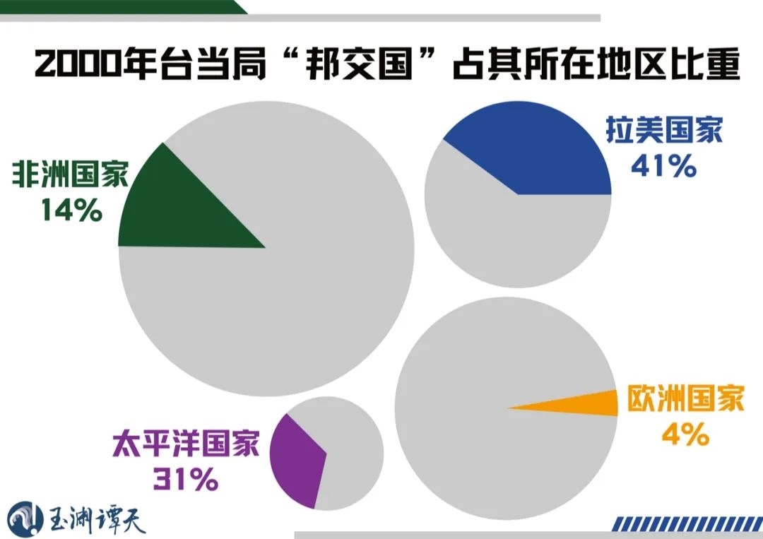 在2000年,臺灣當(dāng)局的“邦交國”僅覆蓋拉美、非洲、太平洋和歐洲四個區(qū)域。