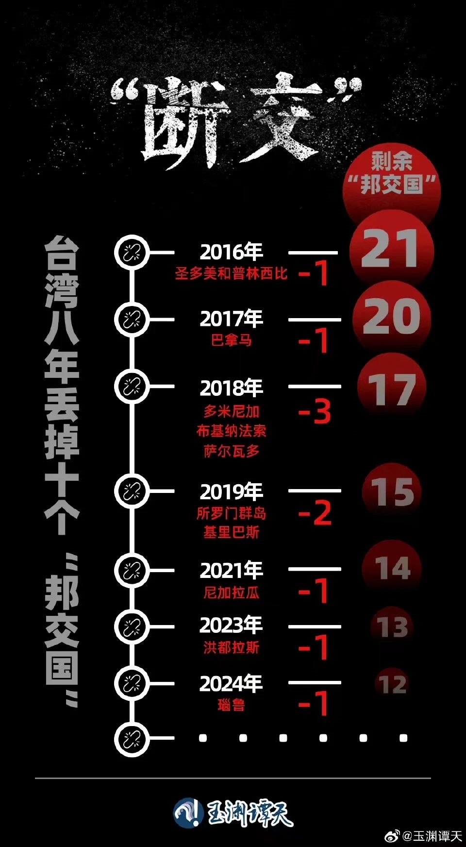 這一輪“斷交”,有一個突出特點,臺灣當(dāng)局所謂重要的“邦交國”全部與其斷交。