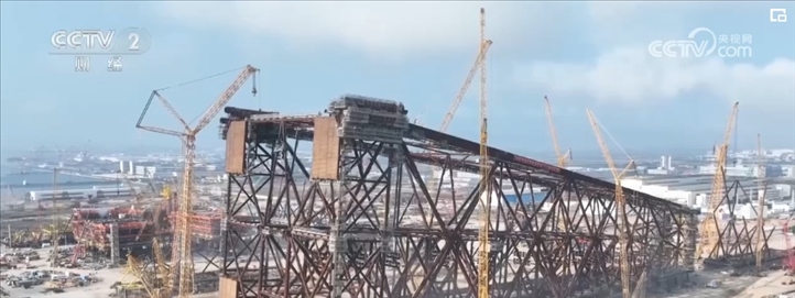 固定式導(dǎo)管架平臺是海洋油氣開發(fā)的關(guān)鍵裝備,由水下導(dǎo)管架、樁腿和水上的生產(chǎn)模塊三部分組成。導(dǎo)管架作為“地基”,支撐著整個海上油氣平臺的穩(wěn)定與安全?!昂;枴睂?dǎo)管架總高338.5米,總重達37000噸,用鋼量接近“鳥巢”國家體育場。由于其所處海域臺風(fēng)頻發(fā),風(fēng)浪及內(nèi)波流極為強烈,因此,該導(dǎo)管架是按照百年一遇的惡劣海況進行設(shè)計。
