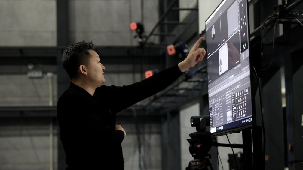 “這是動作數(shù)字孿生,利用光學動捕技術(shù),棚內(nèi)多個專業(yè)攝像頭捕捉演員身上的特定標記,以毫秒級的速率計算出角色的運動軌跡,然后將數(shù)據(jù)傳送到電腦上,實現(xiàn)虛擬人物的動作?!眹覄勇@公共技術(shù)服務(wù)平臺動捕棚的技術(shù)顧問崔盛輯向記者介紹道。