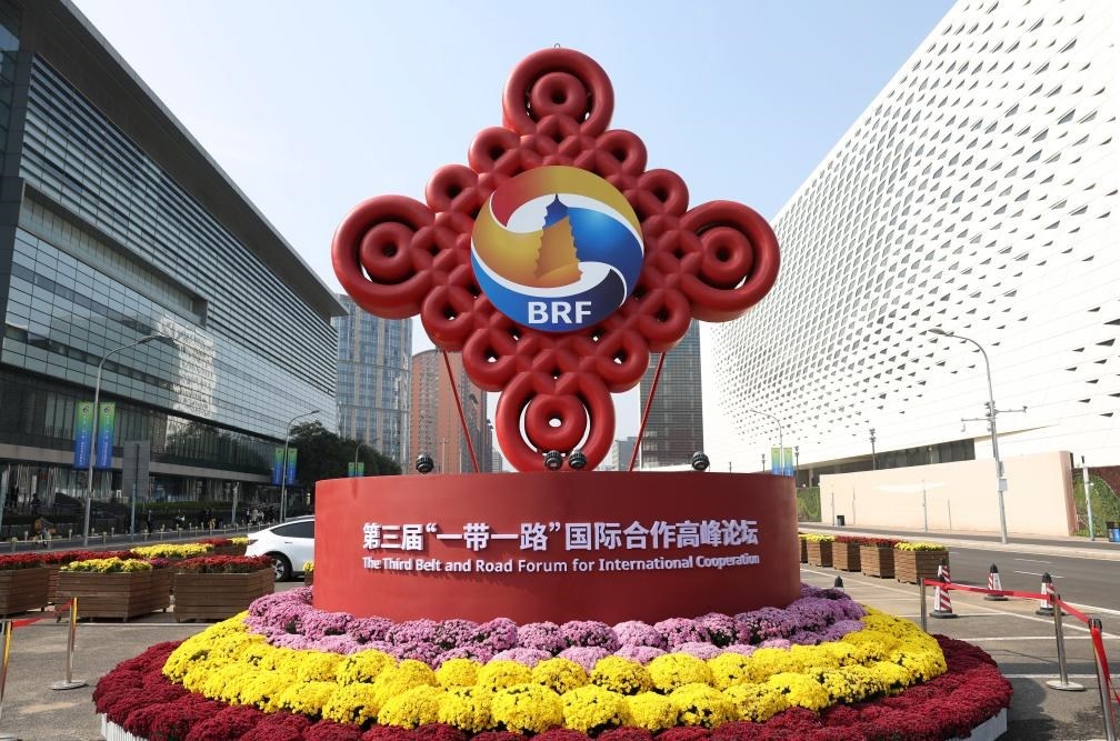 這是2023年10月17日在北京國(guó)家會(huì)議中心附近拍攝的“一帶一路”國(guó)際合作高峰論壇景觀布置。新華社記者 陳斌 攝