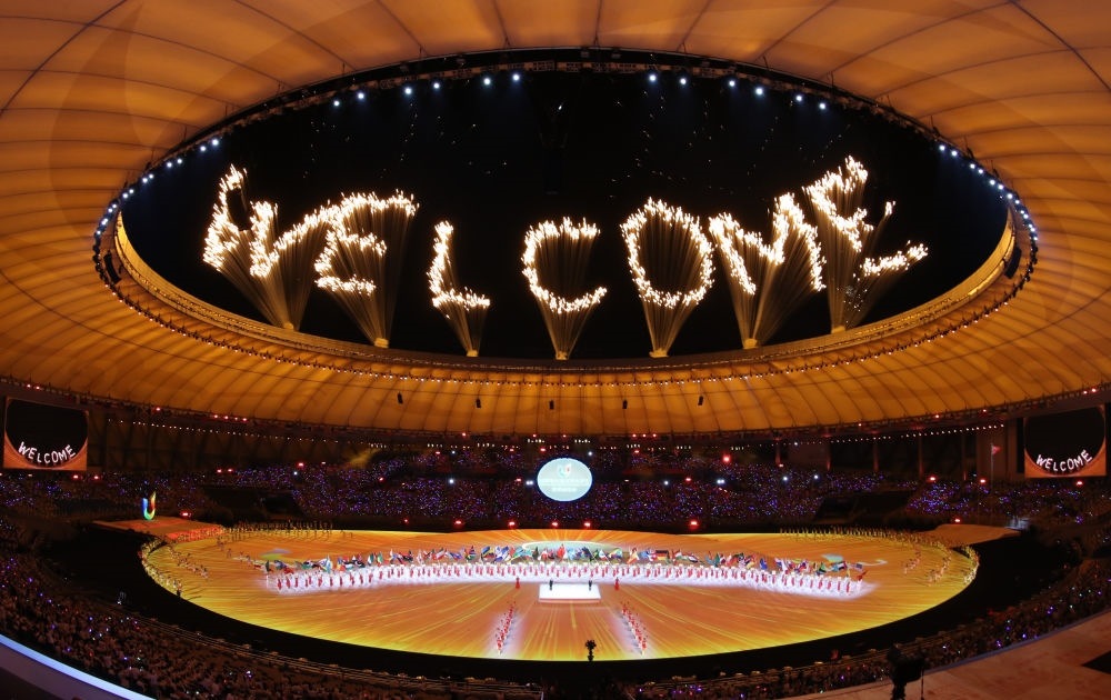 這是2023年7月28日拍攝的第31屆世界大學(xué)生夏季運(yùn)動(dòng)會(huì)開幕式焰火。新華社記者 江宏景 攝