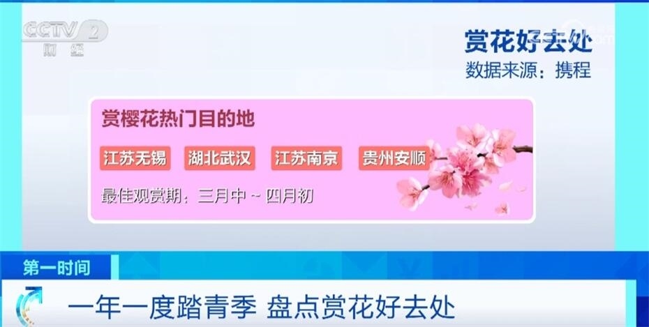 根據(jù)花的類(lèi)別,旅游平臺(tái)推出了最具人氣的前四名賞花目的地,其中賞櫻花熱門(mén)目的地有江蘇無(wú)錫、湖北武漢、江蘇南京、貴州安順。