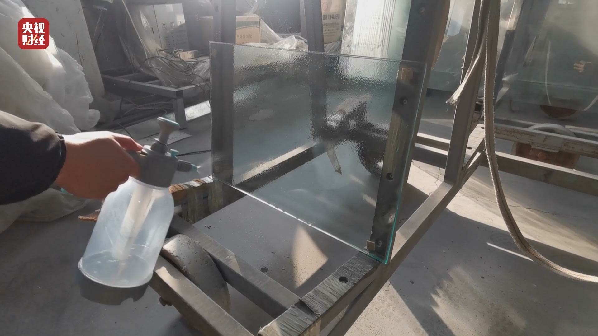 天津順玻玻璃科技有限公司工人:“防火液把它噴成霧狀的,噴一層,不要讓它多到滴下來(lái),就是霧狀的?!?