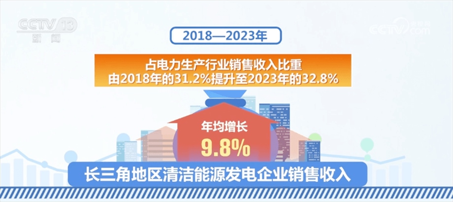 在綠色轉型方面,2018—2023年,長三角地區(qū)清潔能源發(fā)電企業(yè)銷售收入年均增長9.8%,占電力生產(chǎn)行業(yè)銷售收入比重由2018年的31.2%提升至2023年的32.8%,能源結構“綠色化”成效顯著。