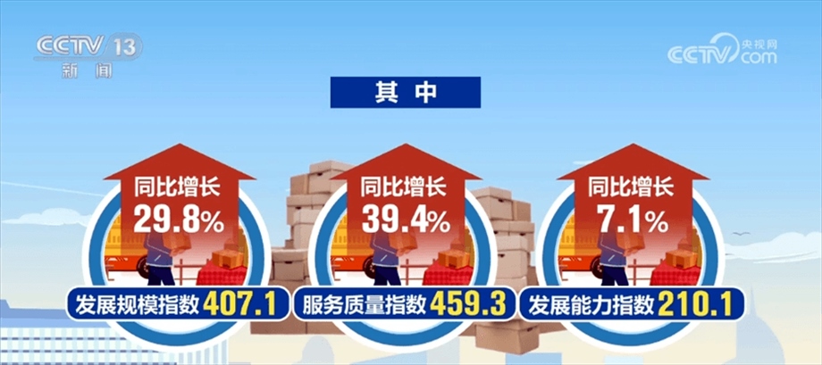 央視網(wǎng)消息:3月15日,國家郵政局發(fā)布2024年1—2月中國快遞發(fā)展指數(shù)報告,1—2月中國快遞發(fā)展指數(shù)同比提升26.7%??爝f發(fā)展指數(shù)評價采用指數(shù)評價方法,以2016年3月為基期,基期值設(shè)定為100。整個指標(biāo)體系包括發(fā)展規(guī)模、服務(wù)質(zhì)量、發(fā)展能力和發(fā)展趨勢等4個一級指標(biāo)和11個二級指標(biāo)。指數(shù)反映出,今年1—2月,快遞業(yè)實現(xiàn)良好開局,市場規(guī)??焖僭鲩L。