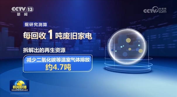 截至目前,我國冰箱、洗衣機、空調等家電保有量已超過30億臺。每年有1億至1.2億臺廢舊家電被淘汰。2023年,全國廢舊家電回收總量達450萬噸,而據研究測算,每回收1噸廢舊家電,拆解出的再生資源能夠減少二氧化碳等溫室氣體排放約4.7噸。隨著國家今年新一輪以舊換新政策的啟動,推動汽車、家電等產品的更新換代,預計將釋放萬億元規(guī)模的市場空間。隨著家電家具等耐用消費品制造循環(huán)利用產供銷、上下游協同聯動、綜合施策,將有更多消費者和全社會從中受益。