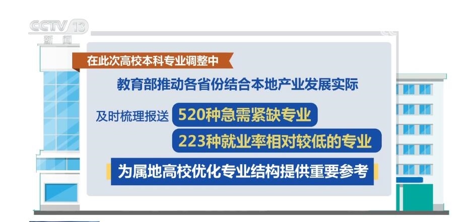 據(jù)介紹,在本次高校專業(yè)調(diào)整中,教育部推動各省份結(jié)合本地產(chǎn)業(yè)發(fā)展實際,及時梳理報送了520種急需緊缺專業(yè)和223種就業(yè)率相對較低的專業(yè),為屬地高校優(yōu)化專業(yè)結(jié)構(gòu)提供重要參考。