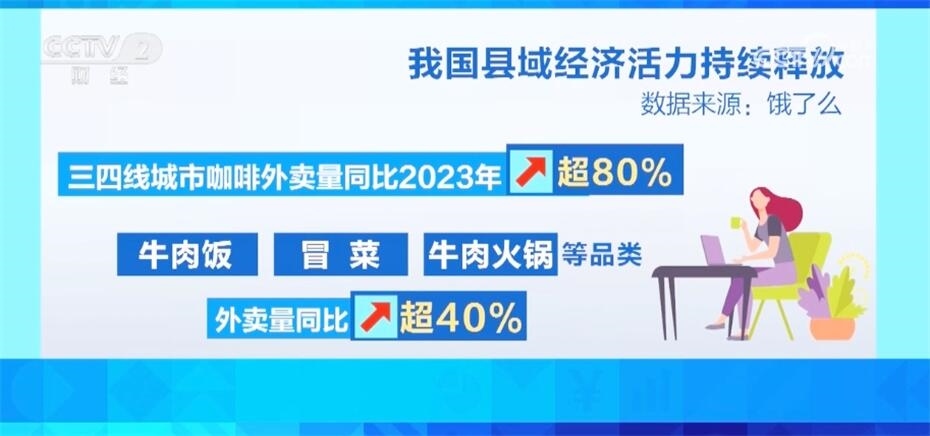 今年以來(lái),三四線城市的餐飲消費(fèi)活力持續(xù)釋放。來(lái)自某生活服務(wù)平臺(tái)的數(shù)據(jù)顯示,今年開(kāi)年后,三四線城市咖啡外賣量同比去年增長(zhǎng)超過(guò)80%,牛肉飯、冒菜、牛肉火鍋等品類外賣量同比增長(zhǎng)超過(guò)40%。春節(jié)假期期間,三四線城市螺螄粉、甜品、沙拉輕食、咖啡和奶茶果汁等熱門(mén)餐食的外賣量更是同比增長(zhǎng)超過(guò)1倍。