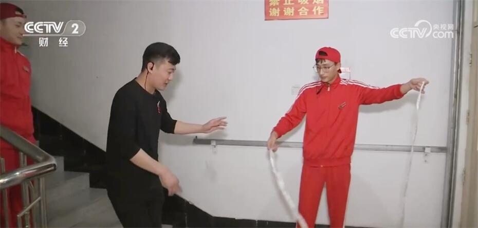 中午兩點(diǎn)左右,史昌換班,可以休息一會(huì)兒,趁著這個(gè)空檔,史昌帶上兩個(gè)徒弟去樓梯間訓(xùn)練甩面。甩面是史昌所在火鍋店吸引客流的重要業(yè)務(wù),去年史昌一共帶了3個(gè)徒弟。隨著門(mén)店生意日漸紅火,史昌預(yù)計(jì)今年得帶出9個(gè)徒弟。