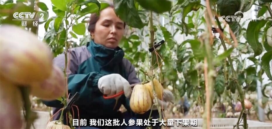 和田縣萬畝設(shè)施農(nóng)業(yè)種植基地技術(shù)員施坤年稱:“每畝的經(jīng)濟(jì)效益在8萬元到10萬元。目前,我們這批人參果處于大量下果期,可持續(xù)到6月份。”