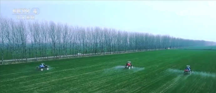 科技助力糧食生產(chǎn)。陜西圍繞春季小麥等作物加強(qiáng)田間管理,開展單產(chǎn)提升等工作。渭南富平縣積極引導(dǎo)小麥種植戶使用節(jié)水灌溉設(shè)備、技術(shù),提高春管效率。在安徽亳州蒙城,70多家社會化服務(wù)組織投入1000多臺自走式高桿噴霧機(jī)、植保無人機(jī),扎實(shí)開展科技田管服務(wù)。
